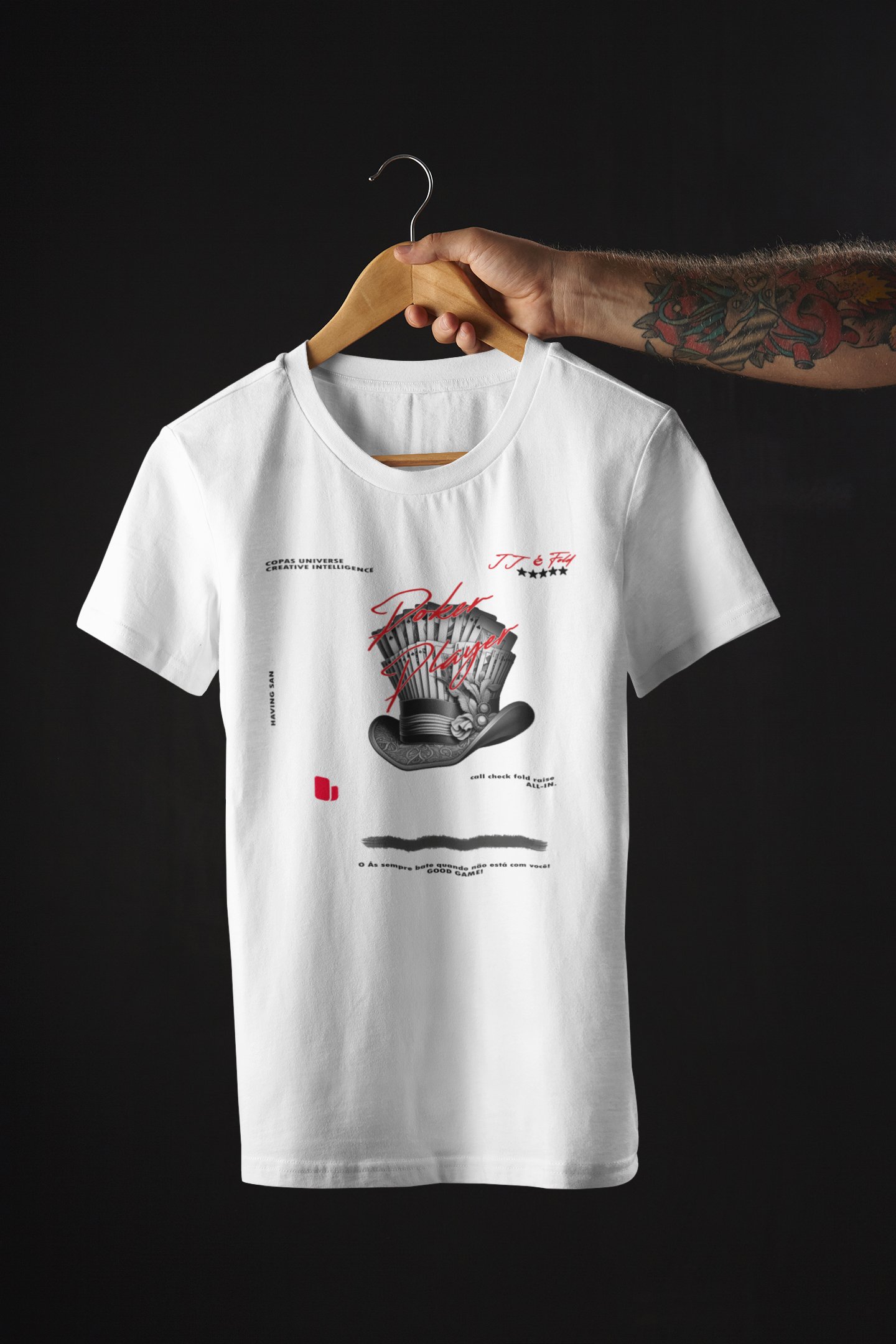 Camiseta preta com estampa “Poker Player”, design original da Copas Universe. Tecido leve, caimento solto e visual marcante pra quem gosta de peças autênticas e cheias de identidade. Ideal pra quem vive o jogo com estilo e presença, dentro ou fora da mesa.