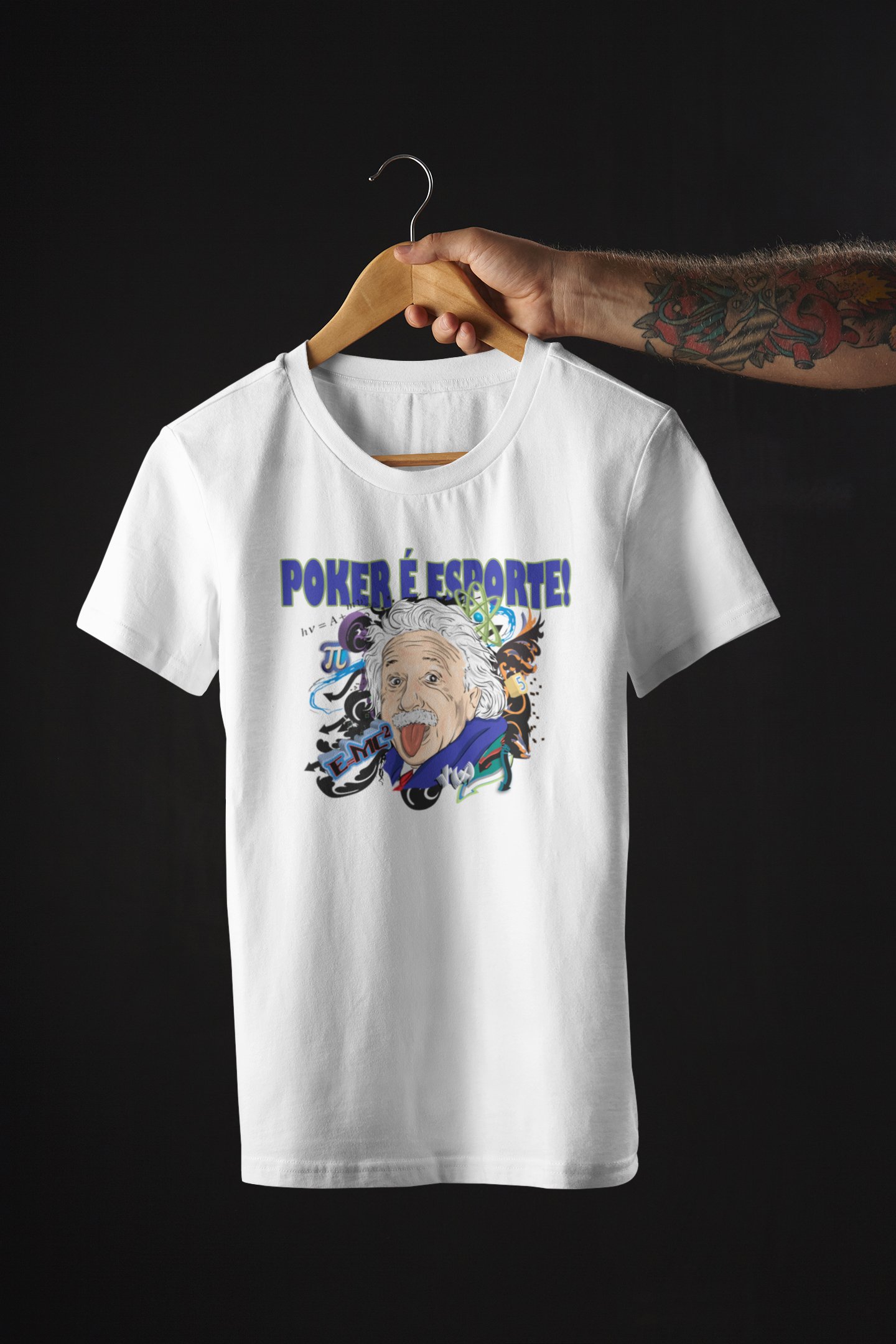 Inspirada na mistura entre lógica, mente ativa e um pouco de ironia, essa camiseta brinca com o debate que a gente ouve em todo lugar: “pôquer é esporte?” A arte parte da imagem clássica do Einstein — símbolo de raciocínio — e mistura com elementos gráficos que remetem ao jogo, à matemática e à cultura de rua. É uma peça feita pra quem leva o pôquer a sério, mas sem perder o bom humor.