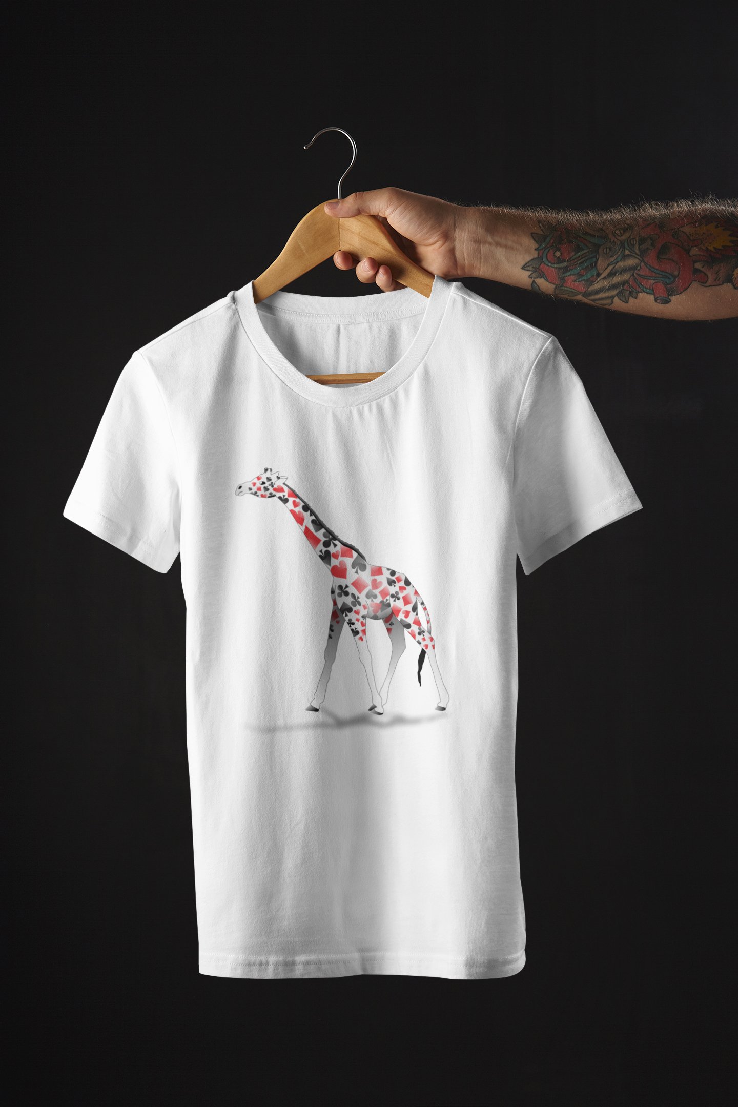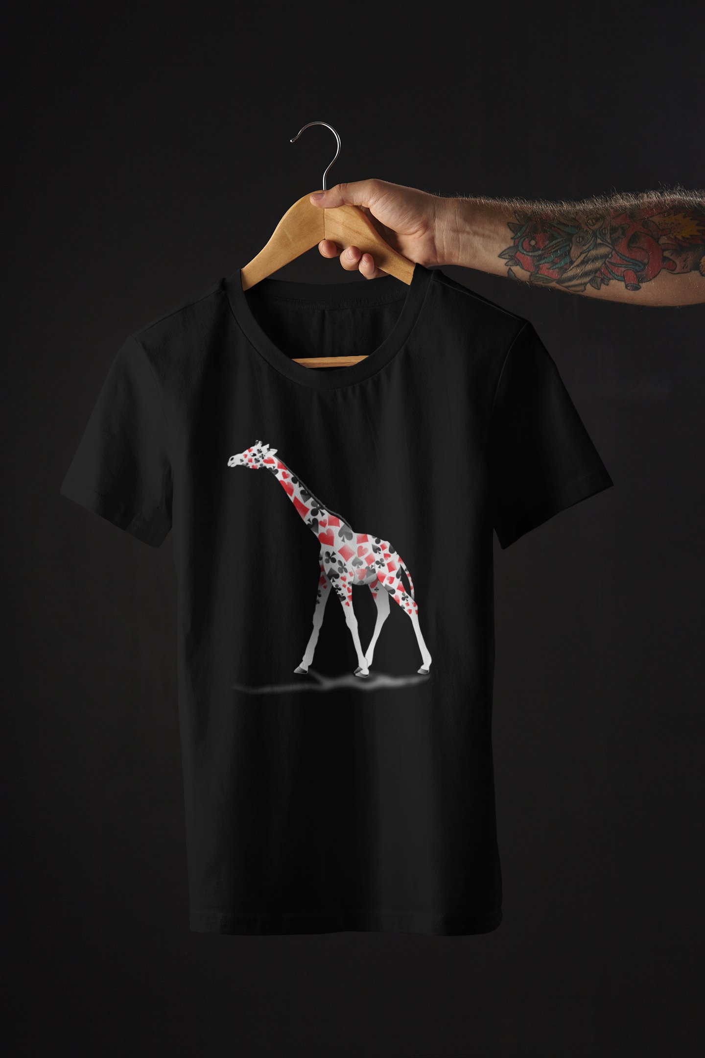 A nova camiseta da Copas Universe traz uma girafa estilizada com padrões dos naipes do baralho — um toque inusitado que combina com quem curte estilo fora do óbvio. Confortável, com corte moderno e arte exclusiva, ela é perfeita pra quem gosta de vestir algo que chama atenção de forma sutil e criativa.